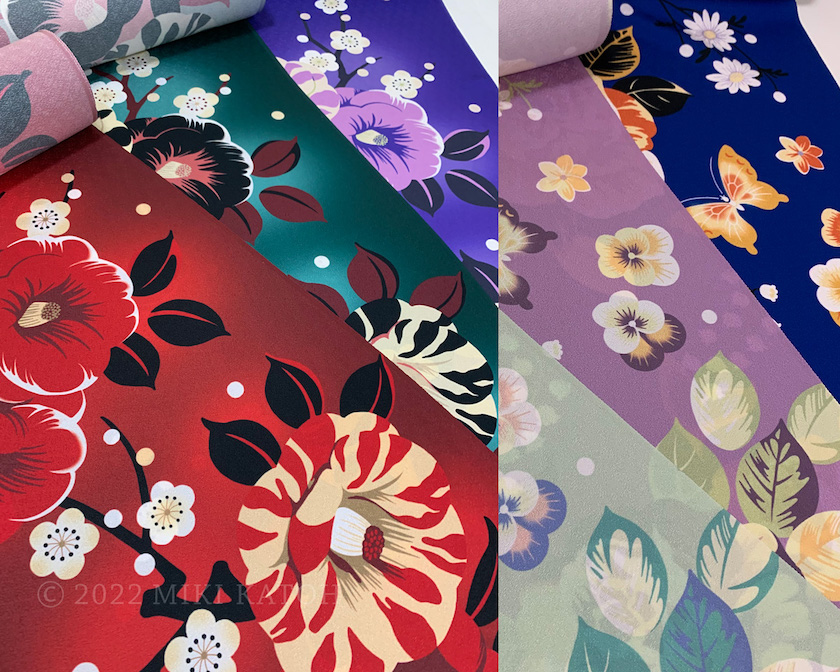 そんな紆余曲折がありましたが、薔薇の着物(3色)と椿と梅の着物(3色)の反物が完成いたしました!
